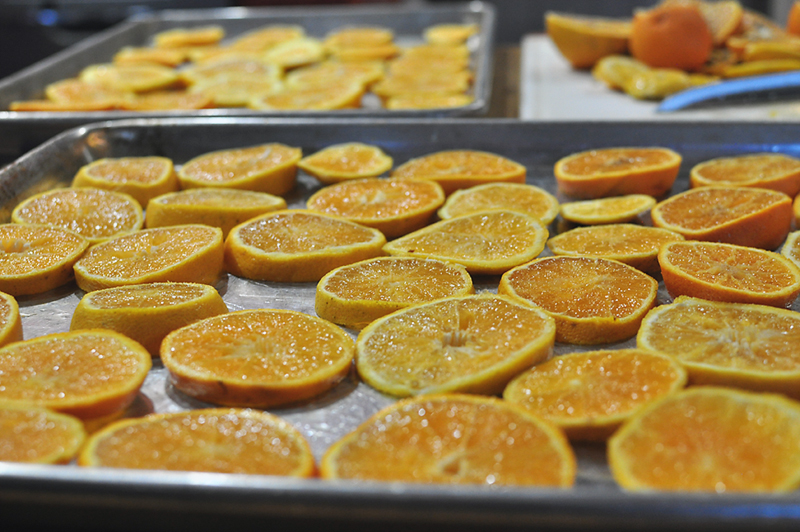 Stephanie | Trying something new with all these left over oranges. Going to dry them out and see if I can string them into some cute decor.